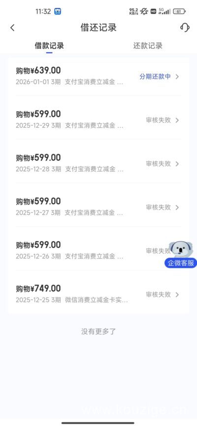 一开始我下载宜口袋APP,注册登录后直接去底部“分期商城”,顶部就有“支付宝立减金”入口。点进去抢购,选择用口袋支付,分3期还款,每月200多块,看起来挺简单。第一次提交后显示“行方审核中”,等了半天变成失败。第二次、第三次也一样,基本都是秒拒或者审核不通过。我当时挺纳闷的,资质不算差,征信没大问题,为什么老是过不了?